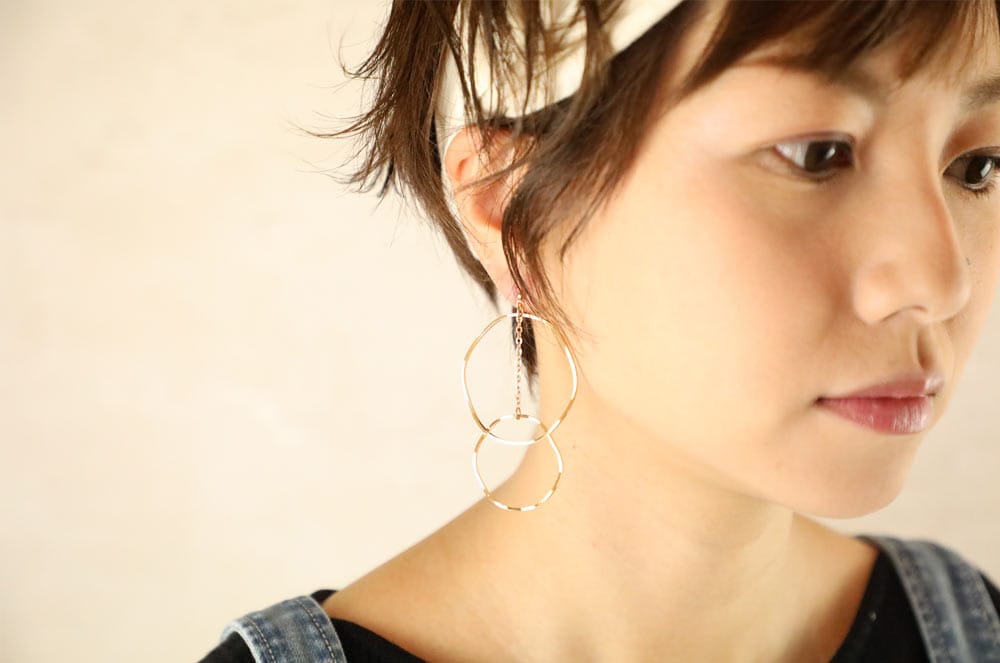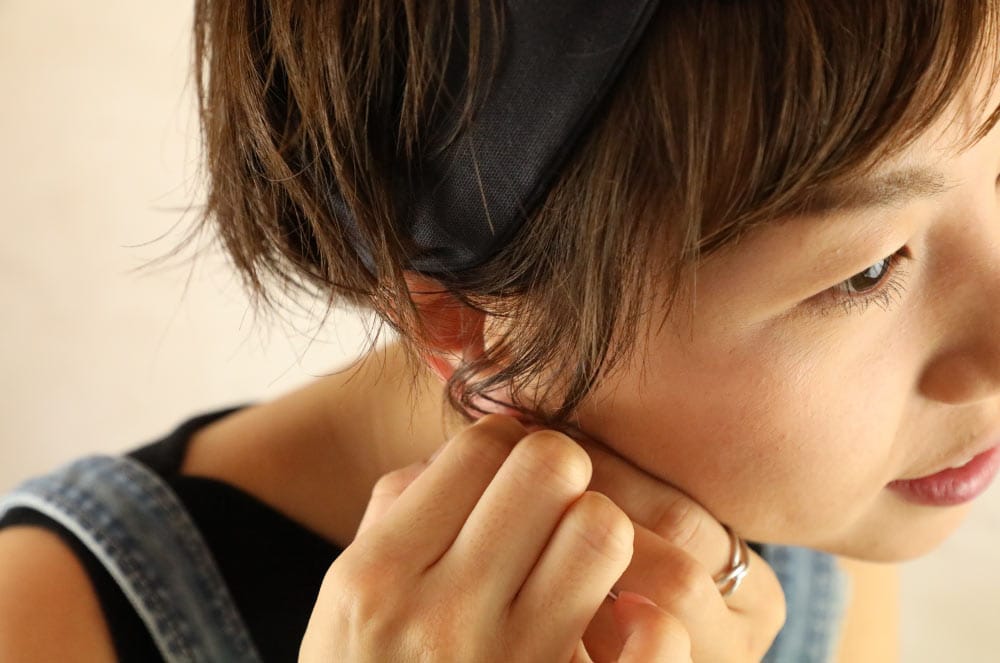 ヘアカット、カラーリング、ヘアバンド、ピアス